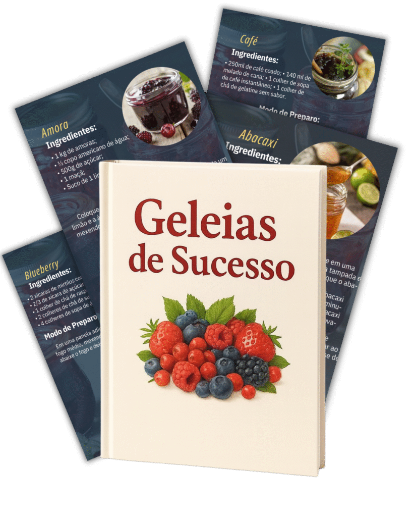 Você aprende técnicas simples e infalíveis que garantem geleias firmes, brilhantes, saborosas — sem cristalizar, sem ficar líquida, sem desperdício.